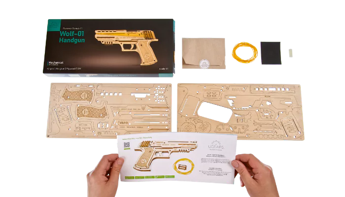 UGEARS-ի կոնստրուկտորները պատրաստված են բարձրորակ նրբատախտակից, որը կտրվում է գերճշգրիտ լազերի օգնությամբ: Յուրաքանչյուր տուփ պարունակում է հավաքման համար անհրաժեշտ բոլոր մասերն ու հրահանգները, ինչը թույլ է տալիս անմիջապես սկսել և վայելել ստեղծագործական գործընթացը:
